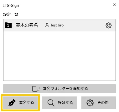 この手順では、署名のたびに署名タイプやフォルダーの設定をしなくてはなりません。