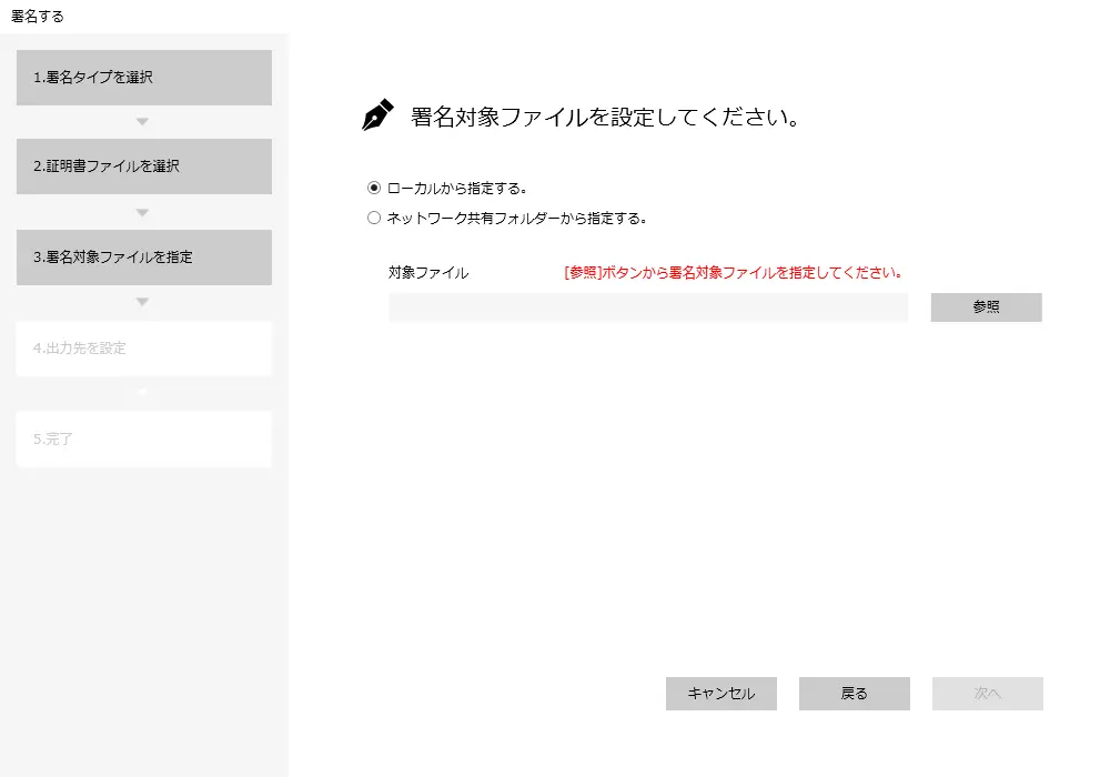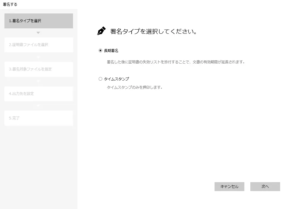 署名タイプやファイルを指定し、署名をします。