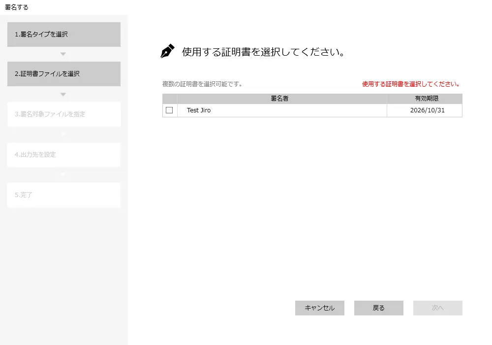 ※ 複数の証明書を選べます。