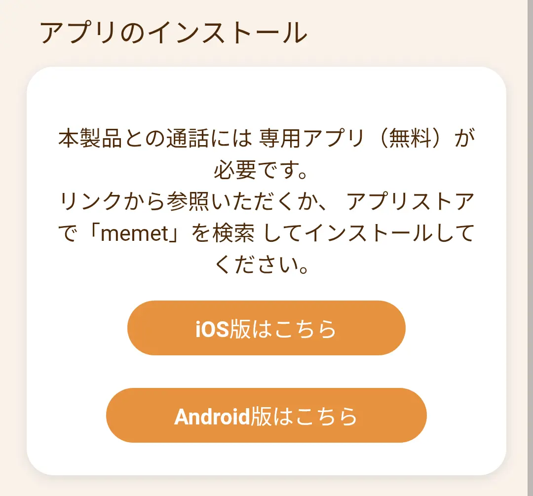 warning注意memet アプリが開かない場合memet アプリのバージョンが古いです。memet アプリをバージョンアップしてください。