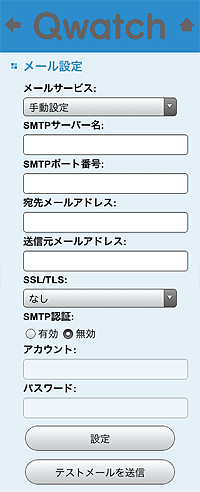 | メールサービス | 手動設定/Yahoo!/Gmailから、送信元メールに対応するメールサービスを選択します。 |