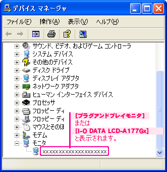 「DisplayManager 2V」をインストールされた場合、[I-O DATA LCD-A177Gx]と表示されていれば、正しく認識されています。