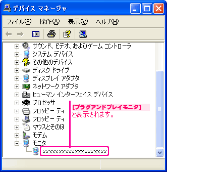 [モニタ]下に[プラグアンドプレイモニタ]と表示されていれば、正しく認識されています。