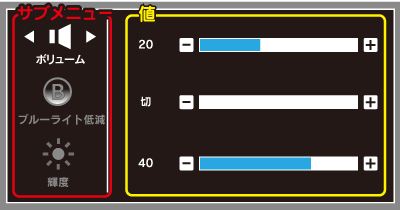 1. ダイレクト設定メニューが表示されている状態で、製品本体の でサブメニュー項目を選びます。