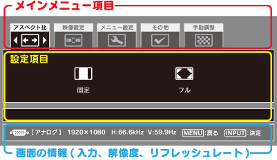 設定メニューには、「メインメニュー」と「ダイレクト設定メニュー」があります。