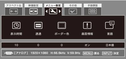 メニュー画面の表示時間を設定します。(出荷時:10)