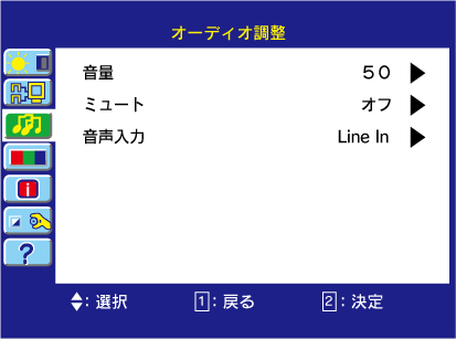 DisplayPort、HDMI信号入力時、音声入力を切り替えます。