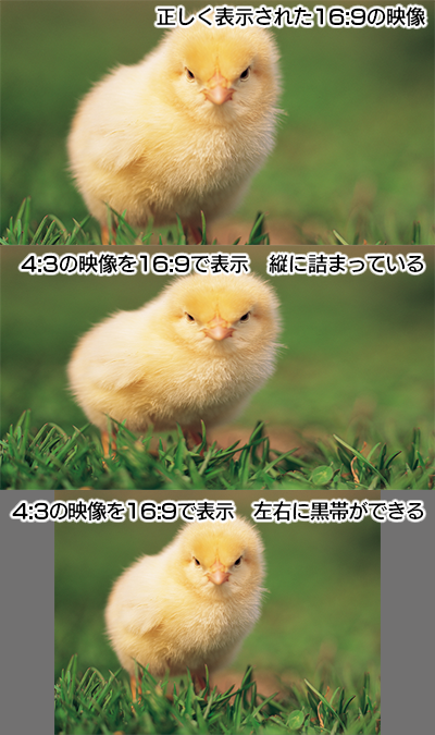 映像の解像度やディスプレイの設定によっては、映像が縦や横に伸びたり、映像の上下や左右に映像が表示されないところができたりしてしまうことがあります。