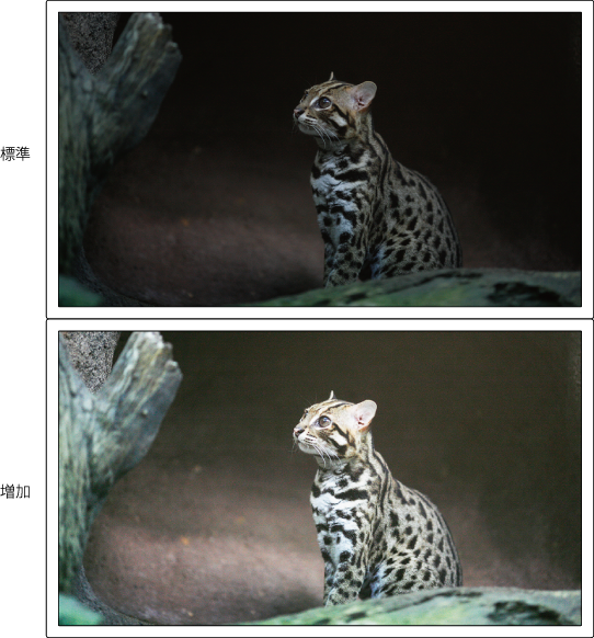 映像が明るいときは輝度を下げ、映像が暗いときは輝度を上げます。