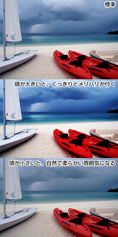 値が大きいほど、映像がくっきりとメリハリのついたものになります。