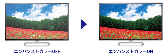 液晶ディスプレイには、映像にメリハリを付け、鮮やかに表現するエンハンストカラー機能があります。
