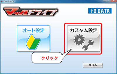 「スタート」→「I-O DATA」→「マッハドライブ」→「マッハドライブの設定」をクリックします。 |