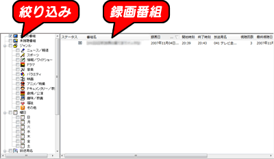 左側「表示内容ツリー」では表示する録画番組を絞り込むことができます。