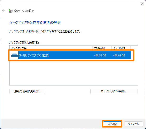 バックアップ先に利用するディスクについて