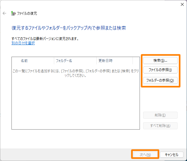 - 復元するファイルやフォルダーを選ぶ