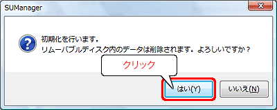 対応USBメモリーを初期化します。 本ソフトウェアで対応USBメモリーを初期化した後に、初めて本ソフトウェアの全ての機能を利用することができます。