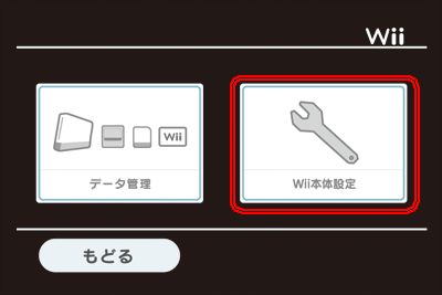 表示された画面で、[Wii本体設定]にカーソルを合わせ、[A]ボタンを押します。 |