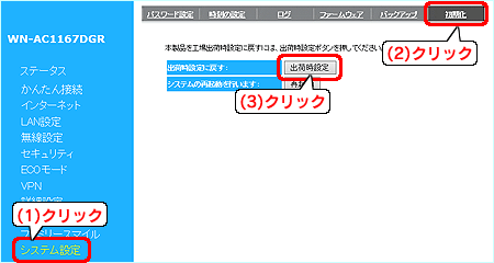 出荷時設定へ戻す方法本製品を出荷時設定に戻す方法を説明します。