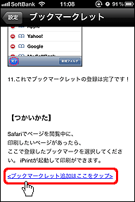- [ブックマークレット追加はここをタップ]をタップします。