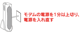 - モデムの電源を1分以上切り、電源を入れ直します。