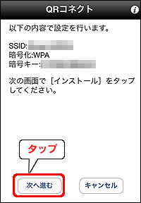 - [次へ進む]をタップします。⇒Safariが起動します。