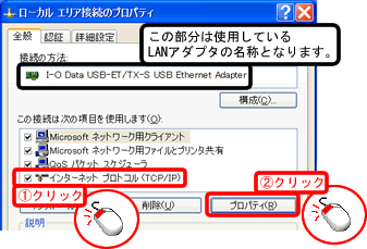 (4) [ローカルエリア接続(もしくは、[ワイヤレスネットワーク接続])を右クリックし、[プロパティ]をクリックします。