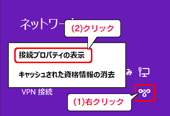 - [VPN接続]を右クリックし、[接続プロパティの表示をクリックします。