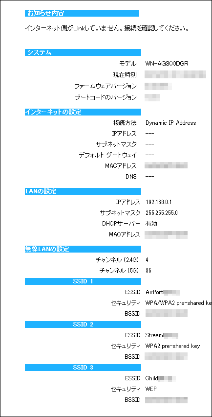 (接続の状態や、ファームウェア更新のお知らせ、ファミリースマイルのライセンス切れ等についてお知らせします。)