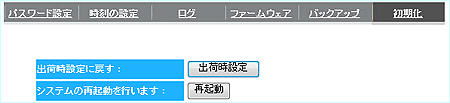 [出荷時設定]を押すと、本製品の各種設定情報が出荷時設定に戻ります。