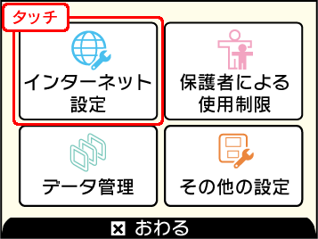 本製品貼付のシールに記載されている暗号キー(13桁)を入力し、[決定]ボタンをタッチします。
