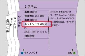 - [ダッシュボード]の[システム]リストにある[ネットワークの設定]を選択し、Aボタンを押します。