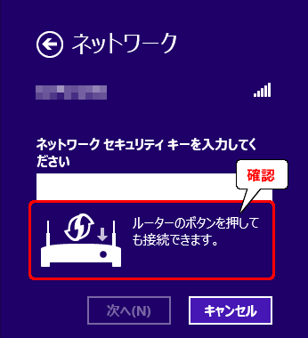 (1)「ルーターのボタンを押しても接続できます。」のメッセージを確認します。