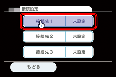 [接続設定]画面が表示されますので、[接続先1〜3]のうち「未設定」のひとつにカーソルを合わせ、[A]ボタンを押します。