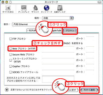 [プロキシ]タブをクリックし、以下の設定を行います。