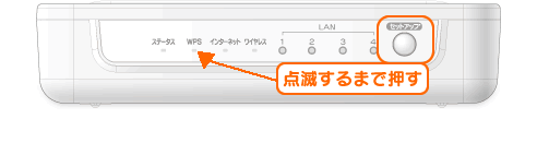 1.本製品(親機)の(セットアップ)ボタンを[WPS]ランプが点滅するまで押します(約10秒)