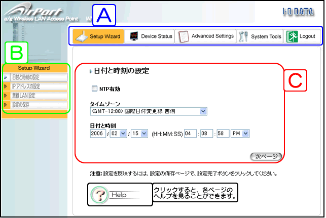図のAでカテゴリーを選択 ⇒ Bでメニュー選択