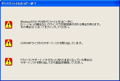 ドライバのインストールが完了するまで、画面の背景が青くなったりしますが、パソコンには手を触れずにしばらくお待ちください。 |