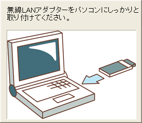 ここではまだ無線LANアダプターをパソコンに挿入しないでください。 |