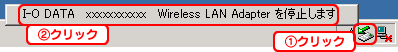 画面右下のタスクトレイのハードウェアの安全な取り外しアイコンをクリックし、[I-O DATA xxxxxx…]をクリックします。