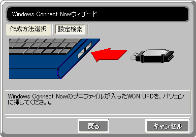 Windows Connect Nowのセキュリティ情報が書き込まれたUSBメモリーをパソコンに差し込みます。