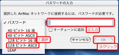 1.[40ビットASCII]または[128ビットASCII]を選択します。