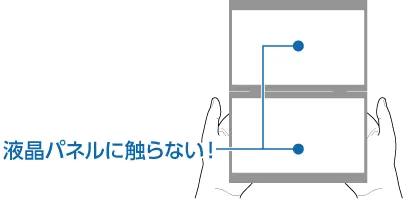 開閉時、上下画面の間やヒンジ部などの可動部には触れないようご注意ください。