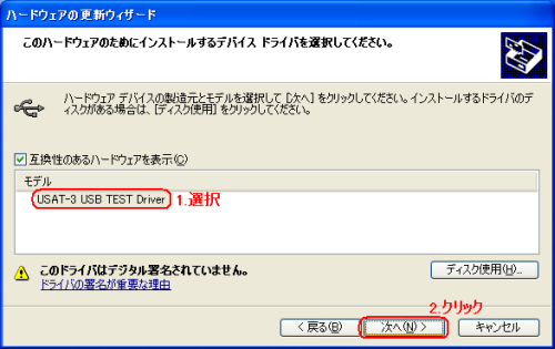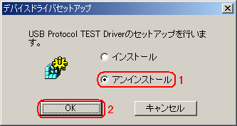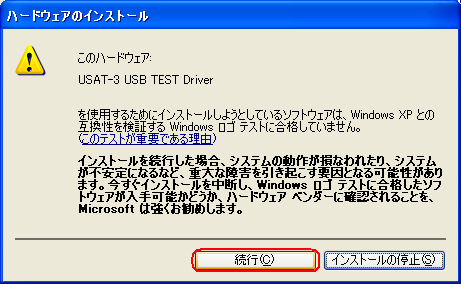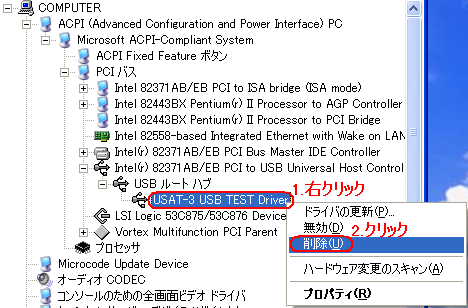 | →Windows 2000での取り外し時のデバイス名はUSAT-3 USB TEST Driverとなっています。