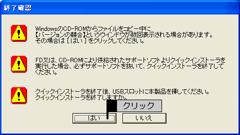 内容を確認して、CD-ROMを取り出し、[はい]ボタンをクリックします。