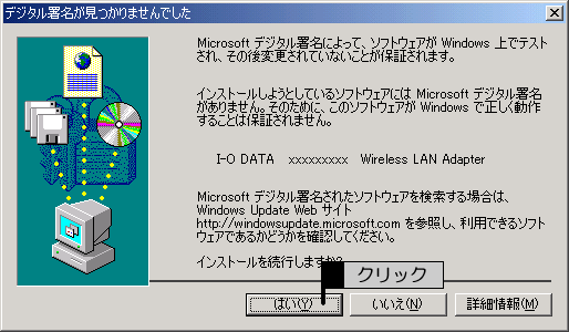 本製品装着後、下の画面が表示されますので、[はい]ボタンをクリックします。