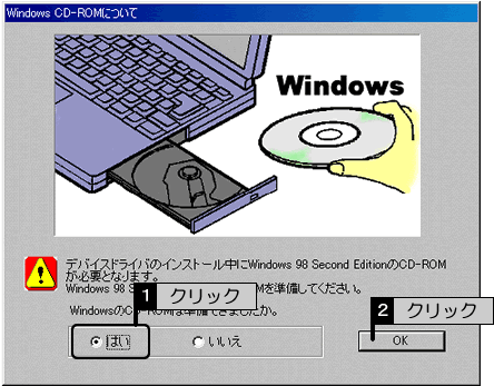 Windows Me/98 SEの場合は、以下の画面が表示される場合があります。[はい]をチェックして[OK]ボタンをクリックします。