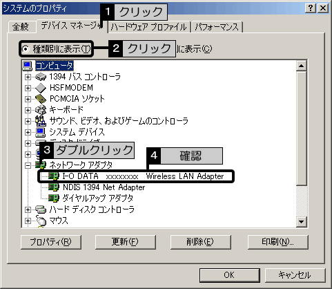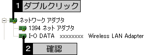 [ネットワークアダプタ]の下に[I-O DATA xxxxxxxx Wireless LAN Adapter]と表示されていることを確認します。