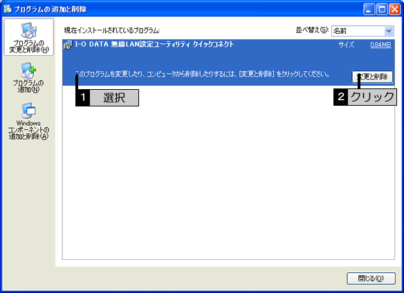 無線LANアダプタは下記の順で削除してください。