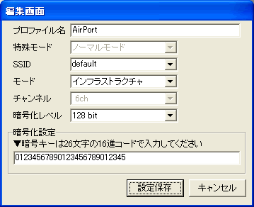 暗号化をするためのキーを、16進数(0〜9またはA〜Fの文字列)を用いて入力します。(64bit:10文字、128bit:26文字)