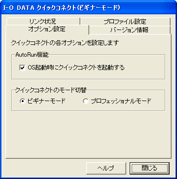 チェックをつけると、OS起動と同時にクイックコネクトが起動し、常駐します。 (システム負荷低減のため、チェックを外してもかまいません。)